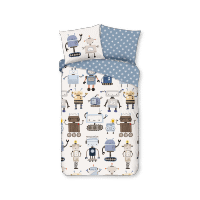 Dankzij de levendige kleuren en grappige robotfiguren is het dekbedovertrek Robo perfect voor kinderen die gefascineerd zijn door robots en graag hun slaapkamer willen omtoveren tot een technologische fantasiewereld. Met Robo wordt naar bed gaan een stuk leuker!