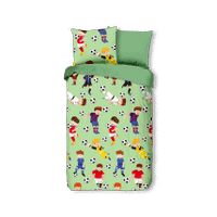 Met het GO dekbedovertrek wordt elke nacht een feest voor jonge voetbalfans! Dit vrolijke dekbedovertrek in frisse groene tint is bedrukt met leuke tekeningen van voetballers in actie. Het zachte materiaal zorgt voor een comfortabele nachtrust. Dit dekbedovertrek is een leuke manier om de liefde voor voetbal elke dag zichtbaar te maken.Â