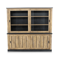 Vitrinekast KAMIEL in Industrial Oak is het van het als je zoekt naar een stoere, industriële look, met een tikkeltje warm landelijk. Makkelijk in onderhoud dankzij de decorfolie afwerking, en toch een heerlijk gezellige uitstraling dankzij de warme houtskleur. Bovendien is deze kast al voorzien van LED-verlichting, zodat je al decoratie en foto's mooi in the picture kan zetten! Deze kast heeft een mooie breedte van 221cm, een hoogte van 202cm en een diepte van 46cm.