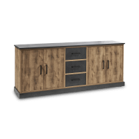 Met dressoir Wilson haal je een stoer en eigentijds opbergmeubel in huis. De materiaalkeuze van decor tropix met zwarte accenten geeft de dressoir een edgy toets. De dressoir heeft 2 draaideuren met softclose-mechanisme en 3 lades met stalen handgrepen.