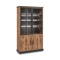 Met glaskast Wilson kies jij wat je graag in het zicht tentoonstelt en wat niet. Deze tweedeurs vitrinekast bestaat gedeeltelijk uit glas en deels uit imitatiehout in een industrieel kader. In de kast vind je ook led-verlichting die jouw producten nog eens in een extra licht zet.