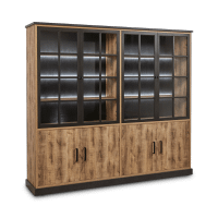 Boekenkast Wilson is de ster van de Wilson-collectie. Imposant en met de nodige grandeur biedt hij veel plaats om al jouw boeken, tijdschriften, documenten en decoratie in op te bergen. De ingebouwde led-verlichting zet ze nog eens extra in de kijker. Met de softclose deuren hoef je je nooit zorgen te maken over lawaai als je iets uit de kast neemt of terugzet. Net zoals de andere artikelen uit de lijn alle delen gemaakt uit decor tropix hout en stalen handgrepen.