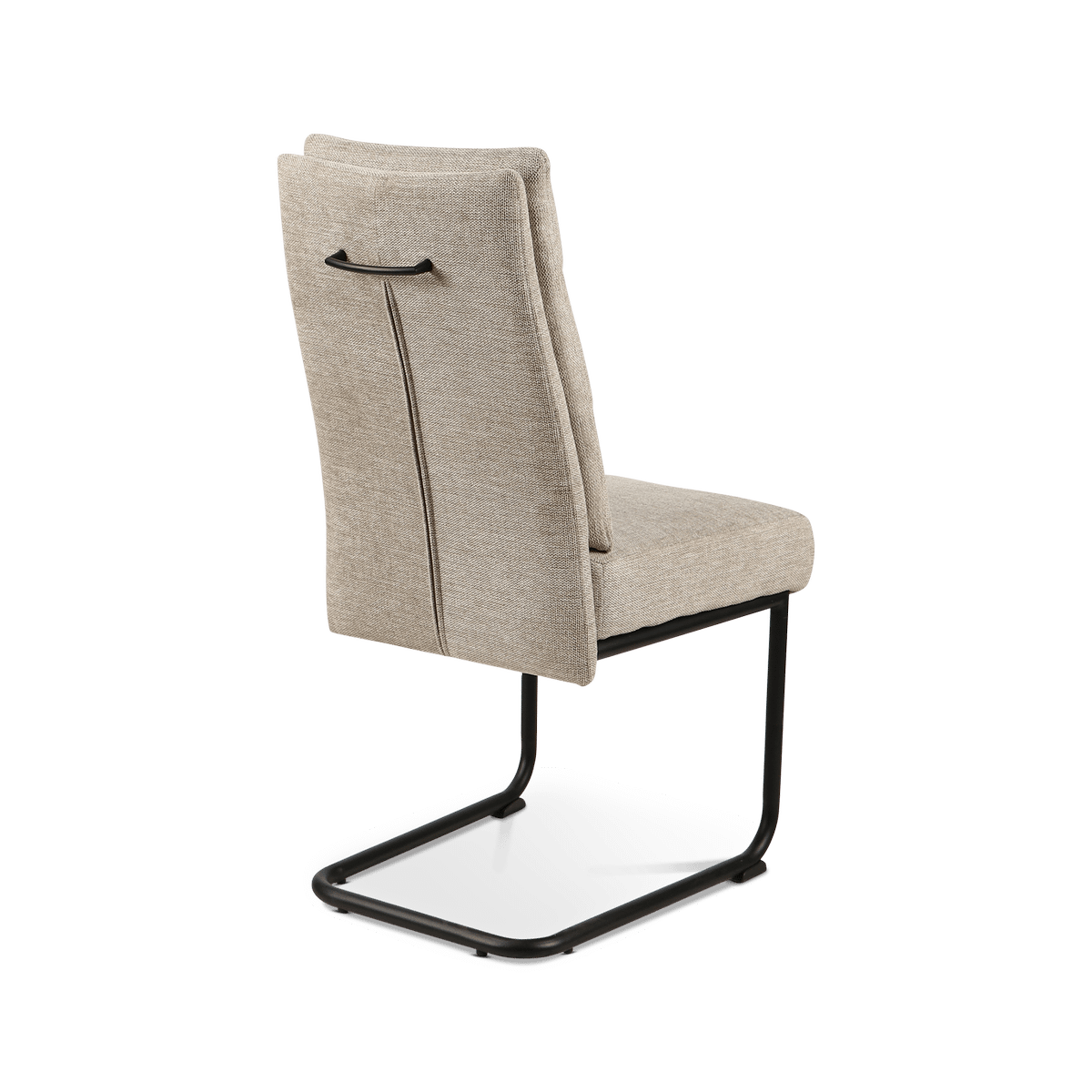 LIMBO Sledestoel combineert comfort met een eigentijdse uitstraling. De zachte beige bekleding en de subtiel gevormde rugleuning zorgen voor een aangename zitervaring, terwijl de greep op de rug het verplaatsen eenvoudig maakt. Het zwart metalen sledeframe geeft de stoel een moderne, luchtige look en biedt tegelijk stevige ondersteuning. LIMBO is een praktische en stijlvolle keuze voor de eetkamer, die zowel bij moderne als tijdloze interieurs past.