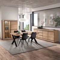 Eetkamer MACOUN: Dressoir + Glaskast + ABBEY Tafel + 4 stoelen LORRY zwart