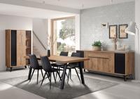 Eetkamer CREW: Dressoir + Glaskast + Tafel 200x100 + 4 stoelen LORRY Zwart