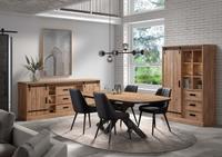 Eetkamer VERDUN: Dressoir + Combikast + Tafel Ovaal 230x120 + 4 stoelen LISSONI PU Zwart