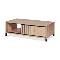 Dankzij het open opbergvak en de schuifdeur biedt deze salontafel zowel ruimte om decoratieve items te tonen als praktische opbergruimte voor tijdschriften, afstandsbedieningen en andere benodigdheden. De solide constructie en doordachte details zorgen voor een stijlvolle en duurzame toevoeging aan je interieur.