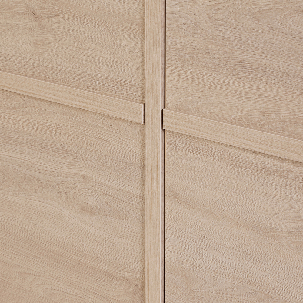 De DANILO Barkast straalt eigentijdse elegantie uit dankzij haar strakke lijnen en warme Urban Oak-afwerking. Deze kast combineert een moderne look met functioneel design en biedt royale opbergruimte achter de gesloten fronten.