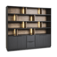 Met de TOSCANA wandkast voeg je niet alleen extra opbergruimte toe aan je interieur, maar ook een stijlvolle en functionele eyecatcher. Deze zwarte wandkast is zorgvuldig ontworpen met vier deuren en twee lades onderaan, waardoor je voldoende ruimte hebt om al je spullen georganiseerd op te bergen. Bovenin de wandkast bevinden zich verschillende nissen waar je decoratieve items kunt plaatsen, terwijl de ingebouwde led-verlichting zorgt voor een sfeervolle uitstraling.