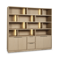 Met de TOSCANA wandkast voeg je niet alleen extra opbergruimte toe aan je interieur, maar ook een stijlvolle en functionele eyecatcher. Deze eiken wandkast is zorgvuldig ontworpen met vier deuren en twee lades onderaan, waardoor je voldoende ruimte hebt om al je spullen georganiseerd op te bergen. Bovenin de wandkast bevinden zich verschillende nissen waar je decoratieve items kunt plaatsen, terwijl de ingebouwde led-verlichting zorgt voor een sfeervolle uitstraling.