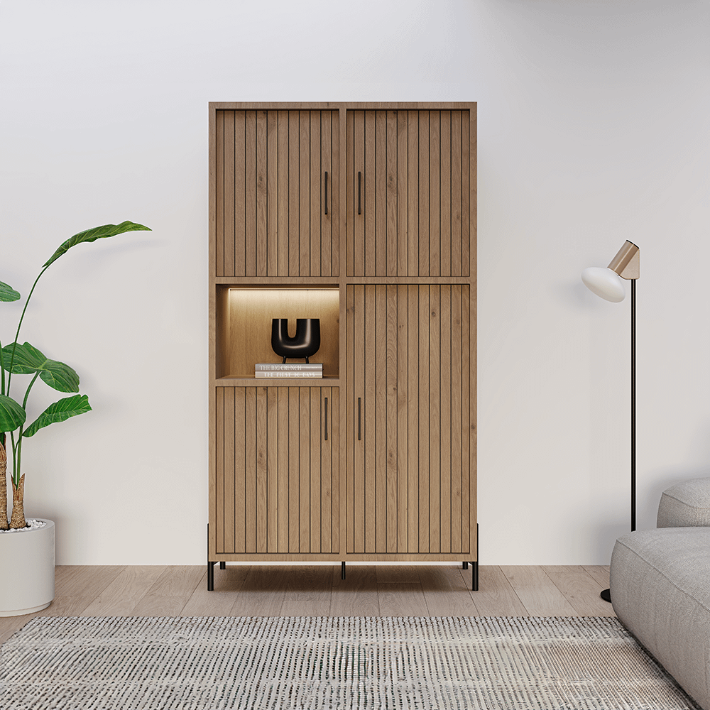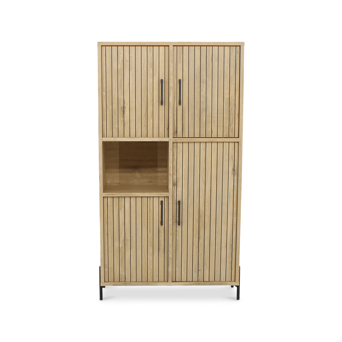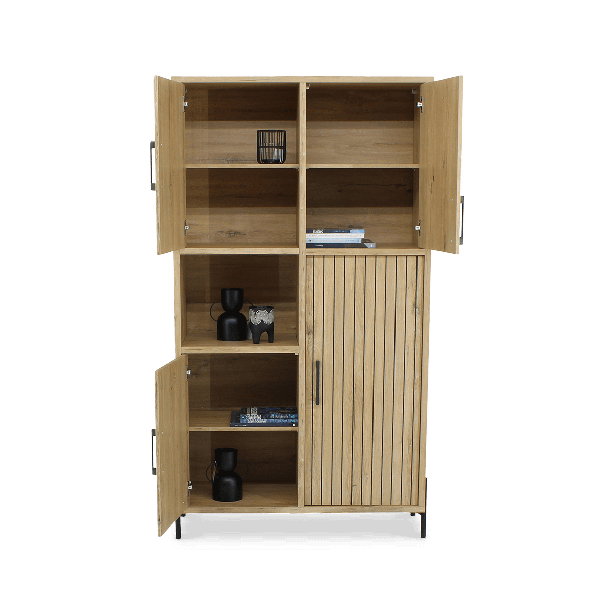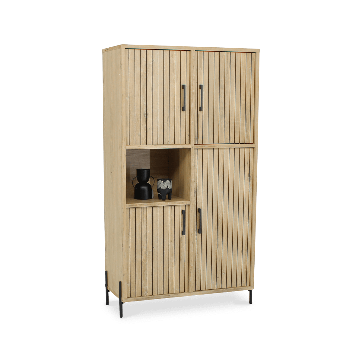 Ontdek onze barkast JAKARTA. Met zijn breedte van 112cm, 4 deuren en nis, biedt deze barkast voldoende ruimte om glazen, flessen en andere benodigdheden netjes in op te bergen.Â