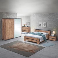 Slaapkamer PIPPA weet stijl en gezelligheid perfect te combineren! De houtlook zorgt voor een tijdloze uitstraling. Het bedkader is voorzien van ingebouwde verlichting wat deze set tot een uniek en handig geheel maakt!
