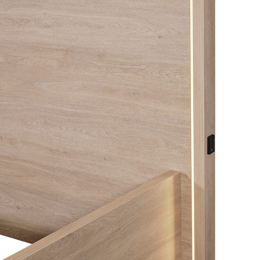Het hoofdbord is uitgerust met geïntegreerde LED-verlichting, wat zorgt voor een zachte, sfeervolle gloed — ideaal om ’s avonds tot rust te komen of een boek te lezen.