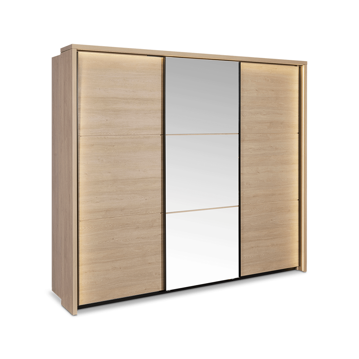 De Urban Oak-kleur brengt rust en een natuurlijk accent in de slaapkamer. De combinatie van zachte verlichting en strakke vlakken zorgt voor een serene en stijlvolle sfeer.