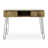 Kaptafel JANICE is een geweldig showstopper om in je slaapkamer bij te zetten. Zo mooi zelf, dat hij perfect in je living als console past. De kaptafel is uitgevoerd in een duurzaam mangohout en heeft een eigentijds design waarbij de lades zijn afgewerkt met fijne latjes.Â