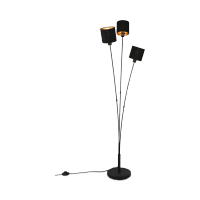 De staande lamp, met drie armen en dus drie lichtpunten in mat zwart/goud, rondt moderne inrichtingsstijlen optimaal af.