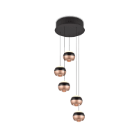Hanglamp ORBIT 5Del. Rond Zwart/Coffee