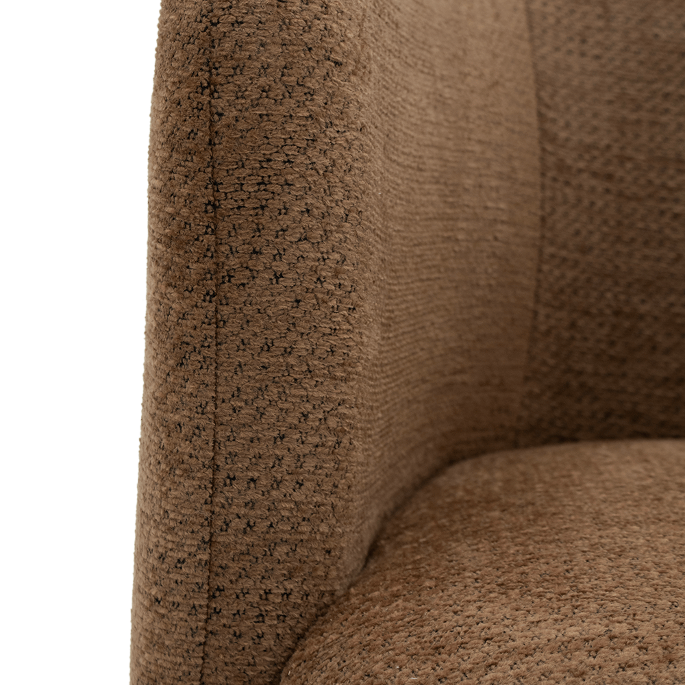De zachte stof zorgt voor een aangename zitervaring en geeft de stoel een warme, uitnodigende uitstraling. Dankzij het tijdloze design en de beperkte afmetingen past MAURO moeiteloos in elke woonkamer, slaapkamer of leeshoek. Een comfortabele en stijlvolle keuze voor wie op zoek is naar subtiele elegantie met een knus karakter.