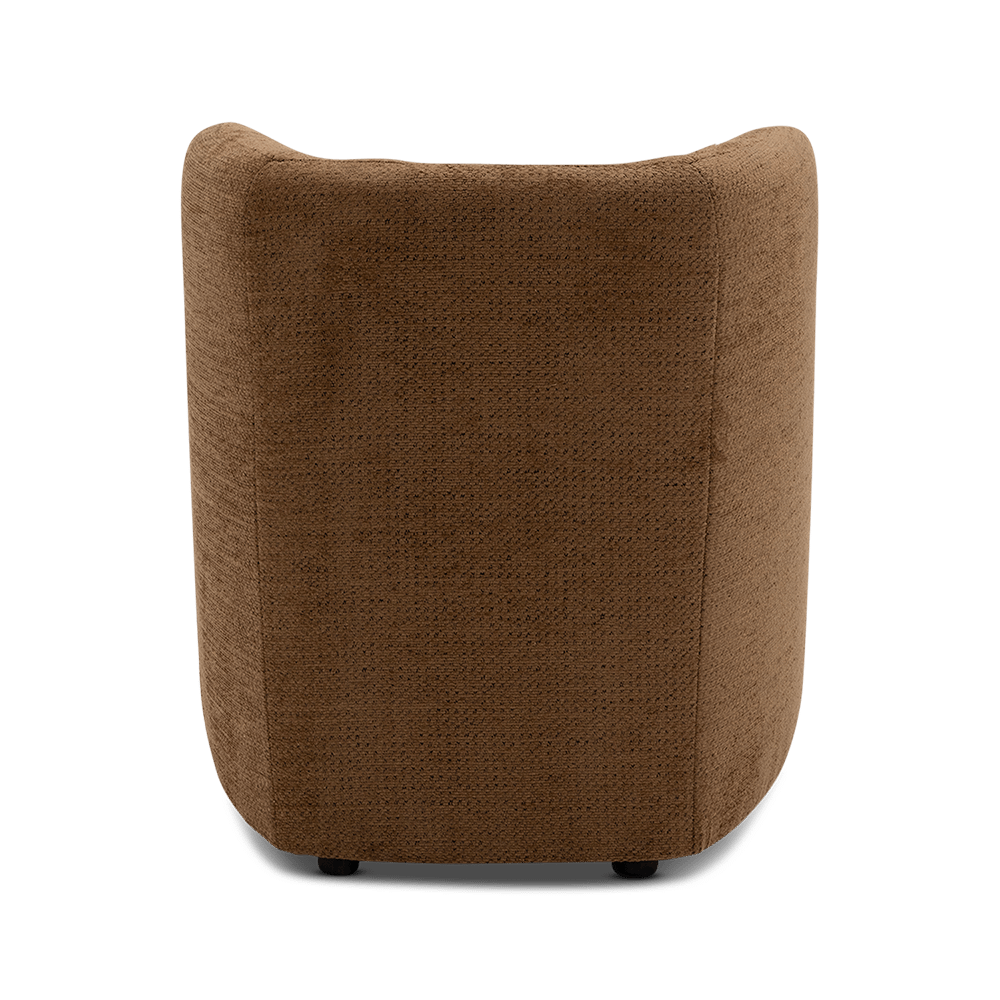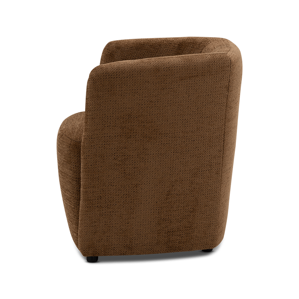 De MAURO Fauteuil in Roestkleur biedt compact comfort met een moderne, afgeronde vorm.