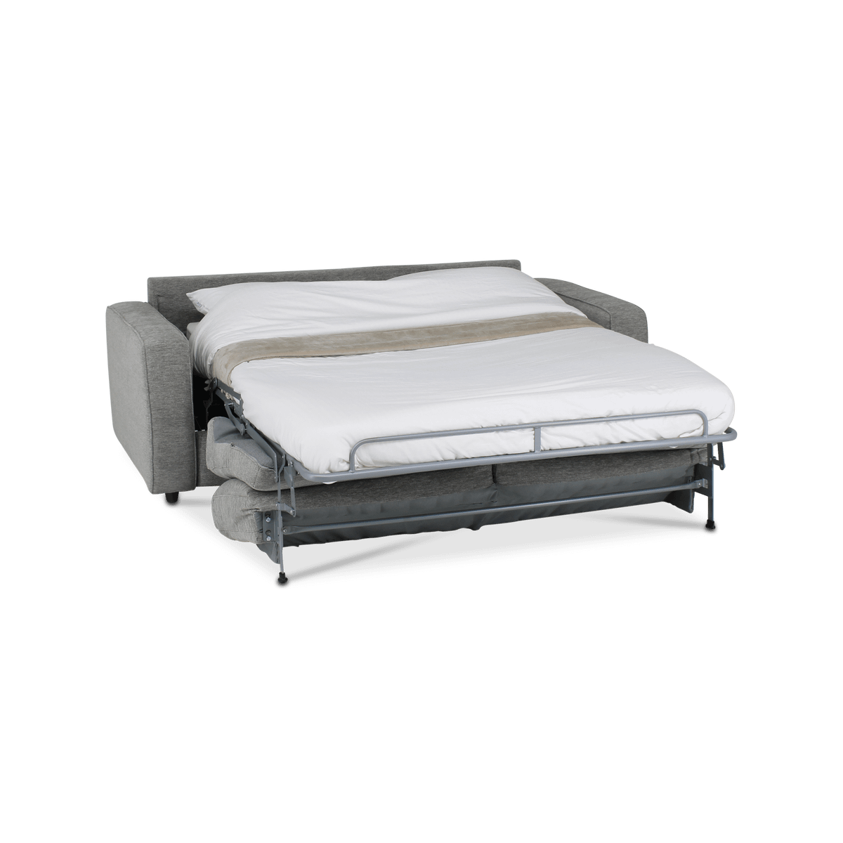De slaapbank AIDAN bewijst dat praktisch wonen er ook gewoon goed uit kan zien. Overdag een uitnodigende zitplaats, ’s avonds in een handomdraai een comfortabel bed voor twee. De grijze kleur Wild Dove geeft het ontwerp een rustige en tijdloze uitstraling die moeiteloos past in verschillende interieurs. Dankzij de breedte van 198 cm biedt AIDAN voldoende zitruimte om met vrienden of familie te ontspannen, terwijl het ingebouwde matras van 140 cm breed zorgt voor een fijne nachtrust als het tijd is om te slapen.