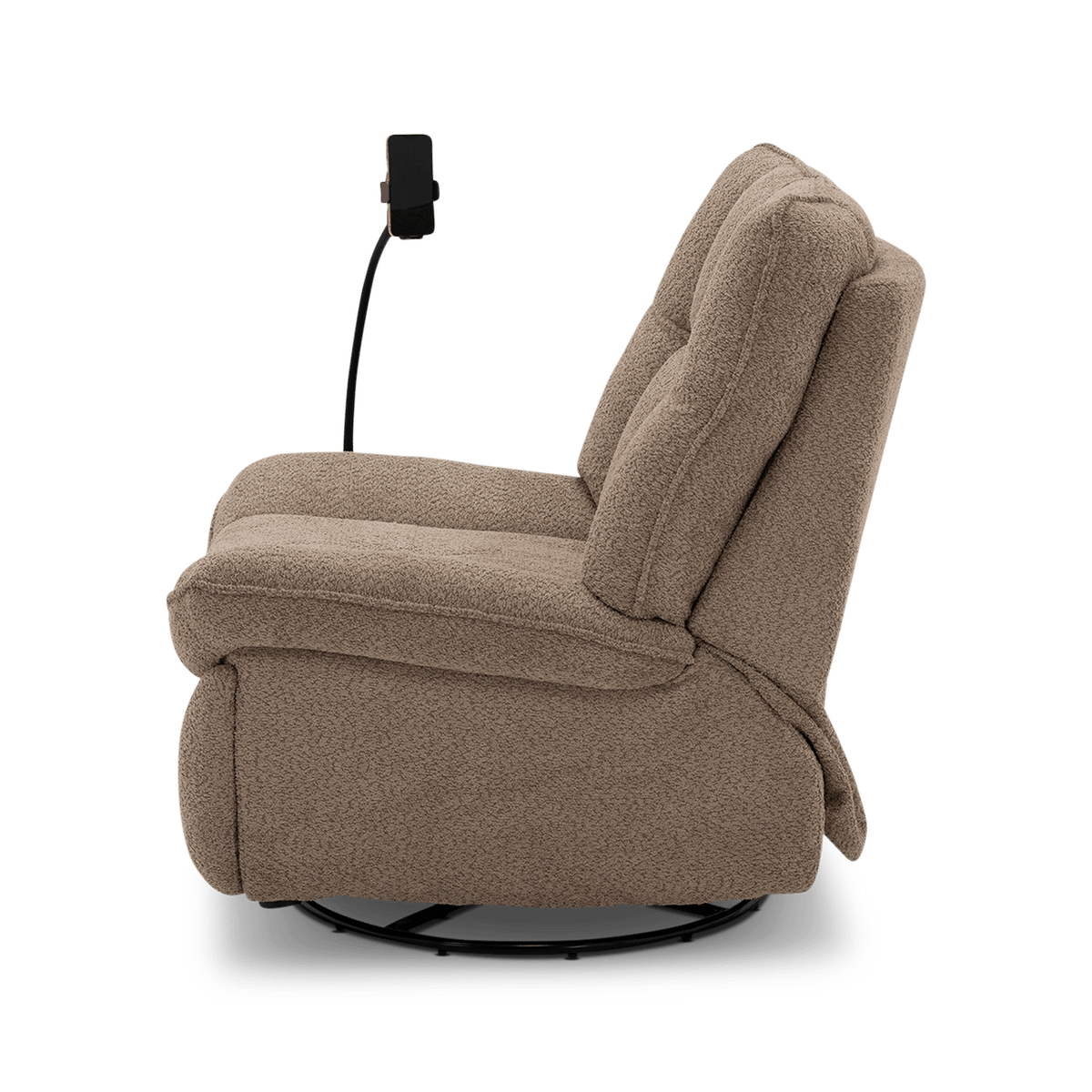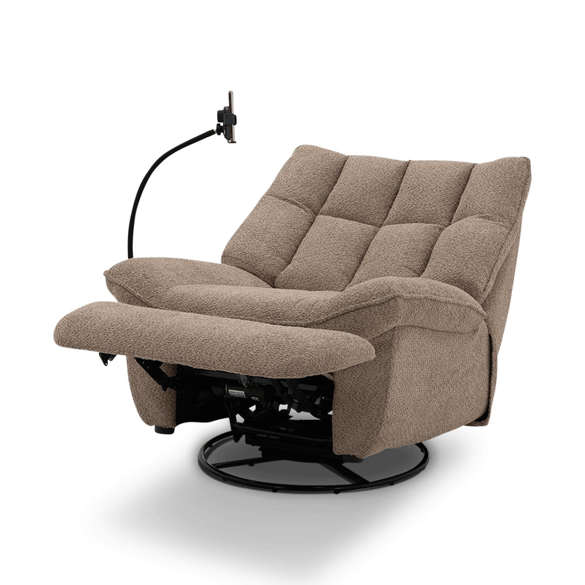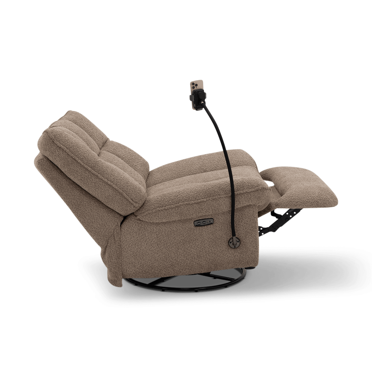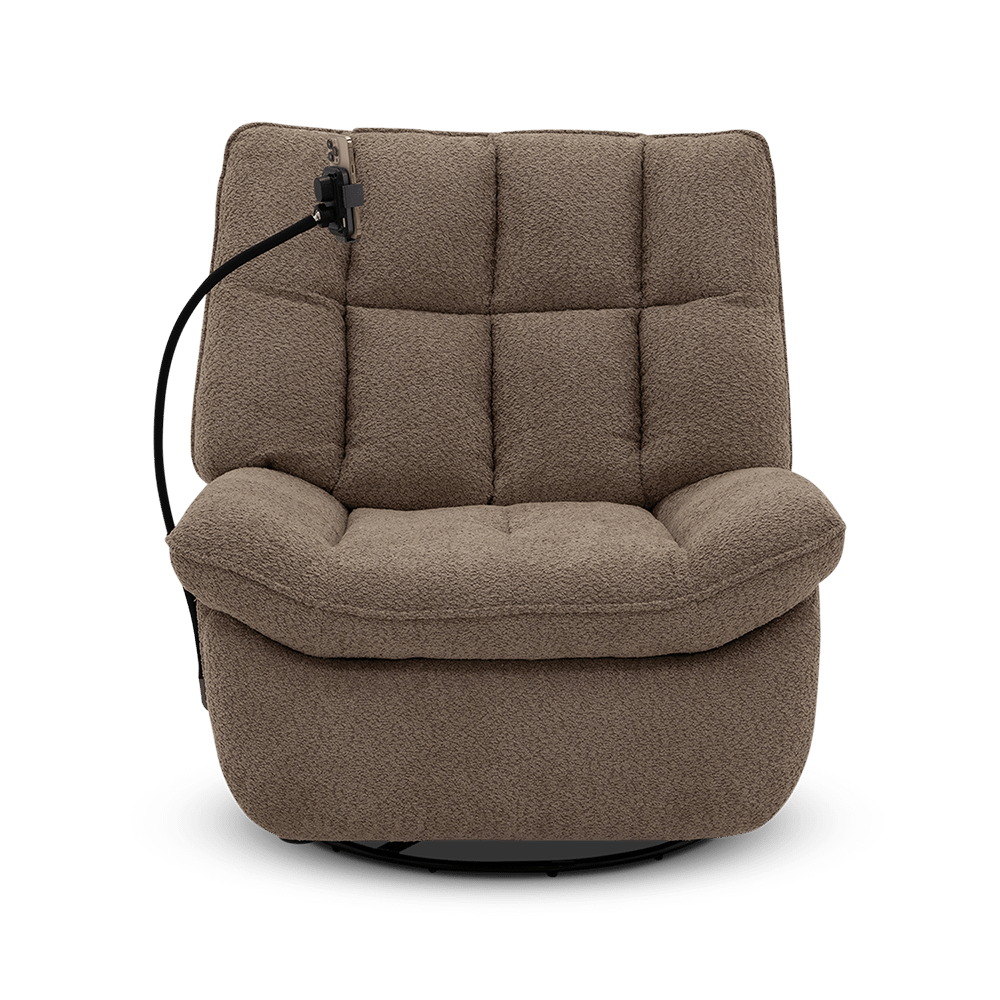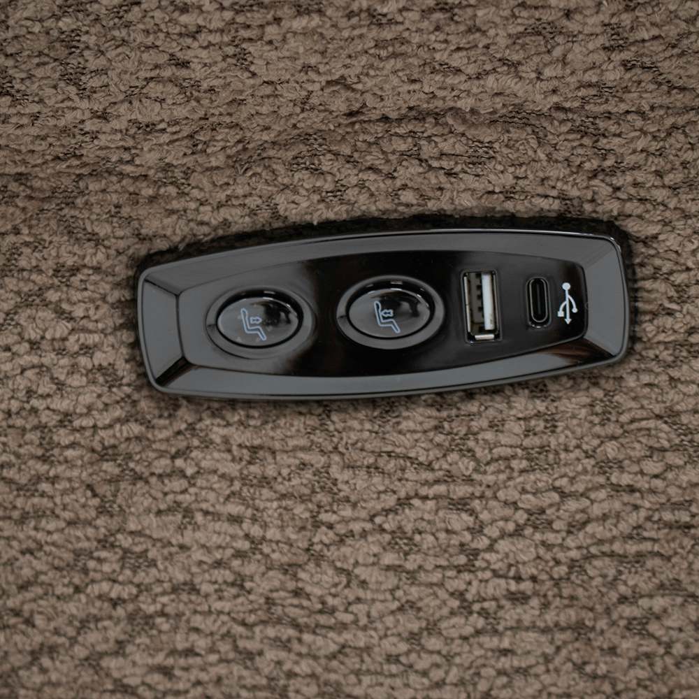 Deze fauteuil beschikt over een elektrische relaxfunctie, draaifunctie én schommelfunctie, zodat je moeiteloos de ideale zitpositie vindt. Dankzij het geïntegreerde oplaadstation laad je eenvoudig je smartphone of tablet op tijdens het ontspannen. Daarnaast is ook een USB en USB-C poort geïntegreerd in dit meubel.