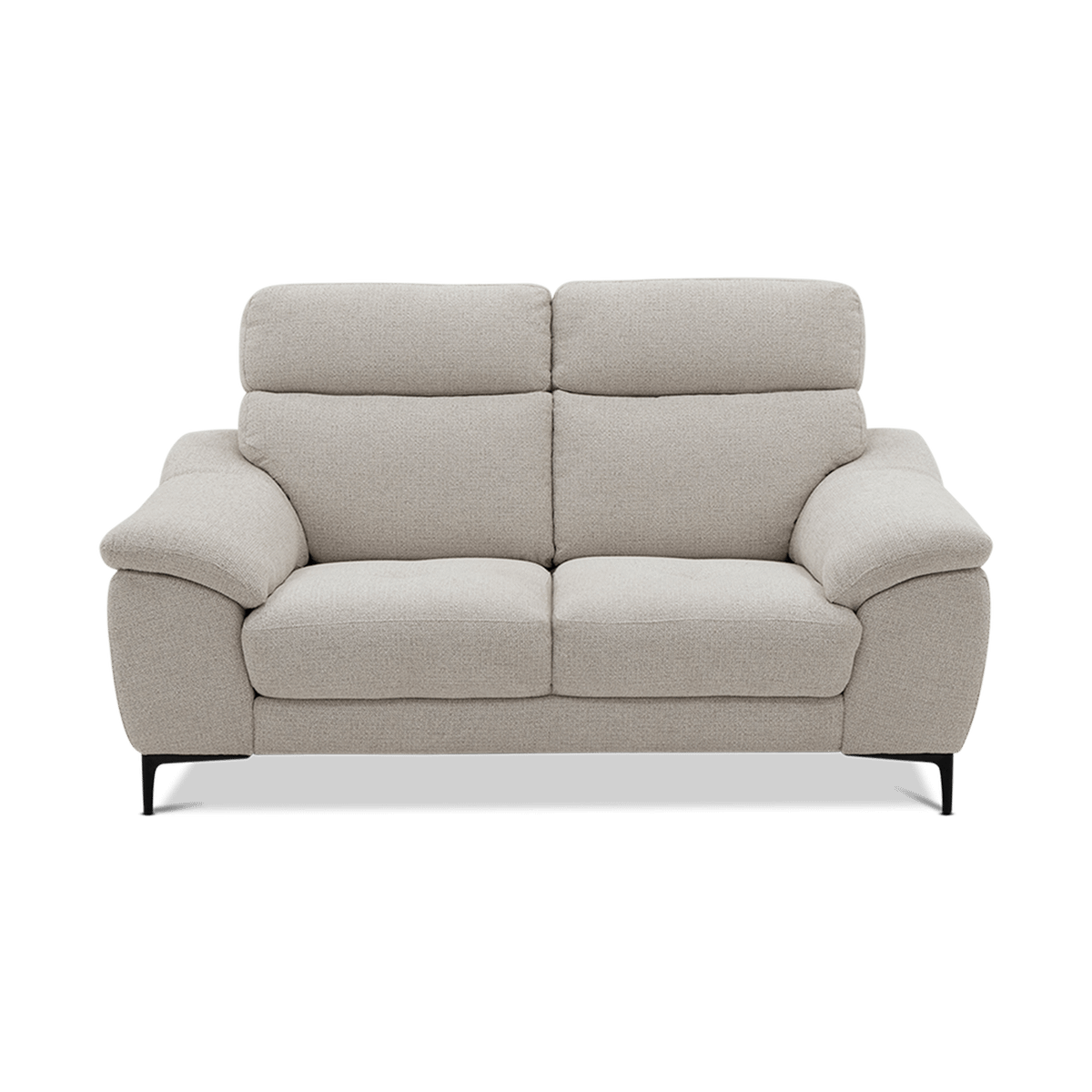 De NOTCH 2-zit is een stijlvolle en comfortabele sofa met een tijdloze uitstraling. De zachte stof in zandkleur zorgt voor een warme en uitnodigende sfeer in elk interieur. Dankzij de brede armleuningen, hoge rug en licht afgeronde vormen biedt deze zetel optimaal zitcomfort.