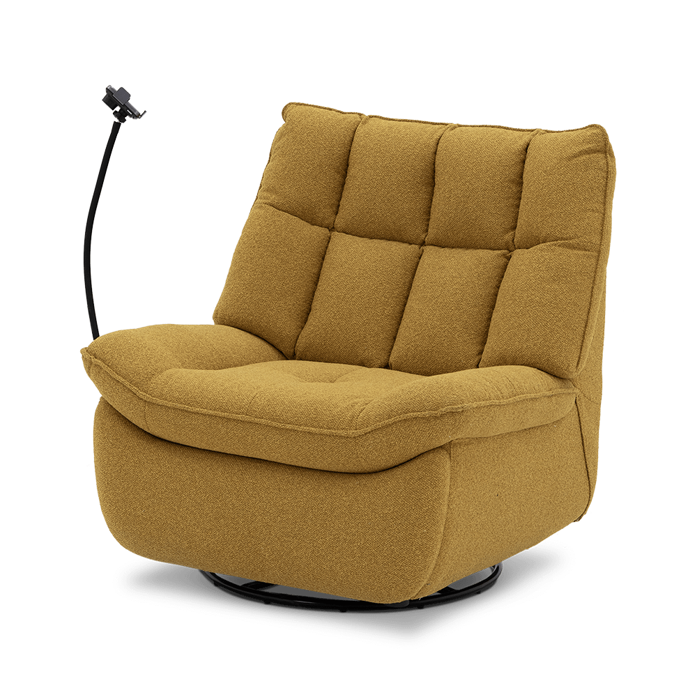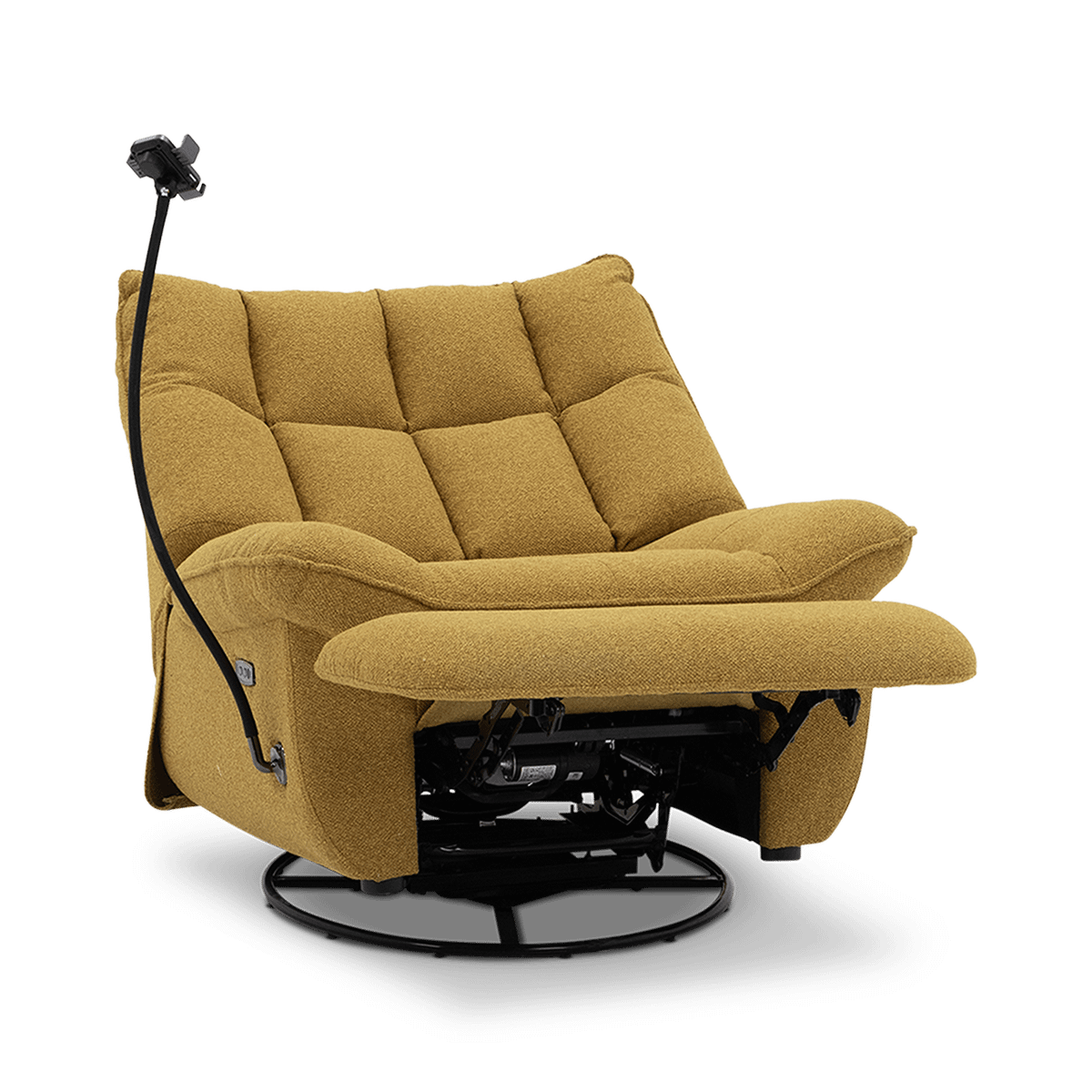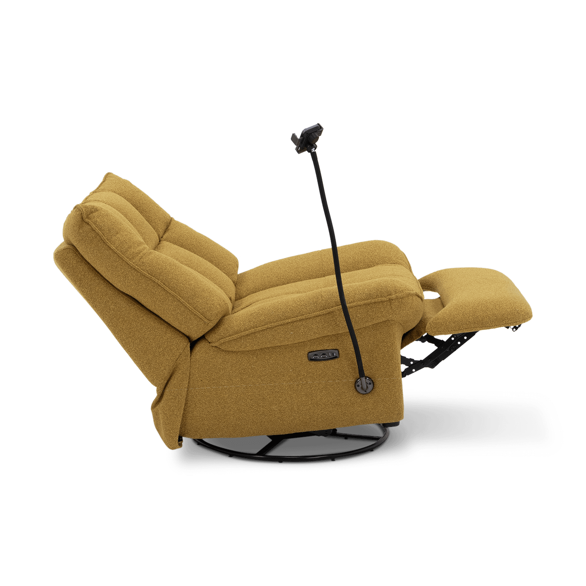 Deze fauteuil beschikt over een elektrische relaxfunctie, draaifunctie én schommelfunctie, zodat je moeiteloos de ideale zitpositie vindt. Dankzij het geïntegreerde oplaadstation laad je eenvoudig je smartphone of tablet op tijdens het ontspannen. Daarnaast is ook een USB en USB-C poort geïntegreerd in dit meubel.