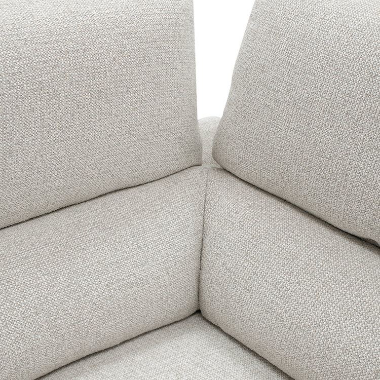 De afgeronde vormen en volumineuze zitkussens zorgen voor een aangenaam zitgevoel, terwijl de warme zandkleur moeiteloos aansluit bij een hedendaags en rustgevend interieur. Dankzij de hoekopstelling met hoek-ligelement geniet je van extra ruimte om languit te ontspannen.