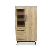 Deze collectie is bovendien enorm uitgebreid. De combikast met een glazen kastdeur is ideaal om je mooie herinneringen en foto's uit te stallen, en heeft ook grote draaideur met softclose en 3 lades. Heel wat opbergmogelijkheden dus!