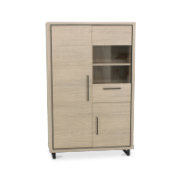 De wandkast LATINA is een prachtige aanvulling op je interieur. Met een breedte van 115 cm biedt deze kast voldoende opbergruimte achter de drie deuren en twee nissen. De naturel afwerking gecombineerd met de zwarte poten en handgrepen geeft de Latina een moderne, maar toch warme uitstraling. Deze kast past perfect bij de andere artikelen uit de Latina collectie, waardoor je een harmonieuze en stijlvolle inrichting kunt creëren. Het slimme ontwerp zorgt ervoor dat je spullen netjes opgeborgen zijn, terwijl de strakke lijnen en subtiele kleuraccenten bijdragen aan een eigentijdse look.