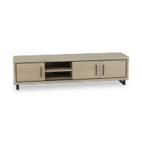 LATINA is het TV-meubel dat functionaliteit en stijl moeiteloos combineert. Met een breedte van 195 cm biedt dit meubelstuk voldoende ruimte voor je televisie, mediatoebehoren en decoratieve items. De naturel afwerking geeft het meubel een warme, uitnodigende uitstraling, terwijl de zwarte handgrepen zorgen voor een strak en modern accent.