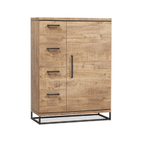 De kast is uitgerust met vier ruime lades, ideaal voor het opbergen van al je baraccessoires, servetten en meer. Achter de enkele deur vind je extra opbergruimte, perfect voor flessen en glaswerk. Het robuuste materiaal zorgt ervoor dat deze barkast jarenlang meegaat, terwijl de praktische indeling zorgt voor een georganiseerd geheel.