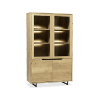 Vitrinekast DIADEMA brengt warmte en verfijning samen in een stijlvol design. De prachtige eikenhoutlook, gecombineerd met subtiele ingewerkte grepen en zwarte metalen poten, zorgt voor een moderne en tijdloze uitstraling. De glazen deuren met de mogelijkeheid tot sfeervolle verlichting, maken deze kast perfect om je mooiste decoratie, servies of verzamelobjecten te presenteren. Onderaan bieden gesloten opbergvakken extra ruimte om spullen netjes op te bergen. Een elegante en praktische toevoeging aan elk interieur.