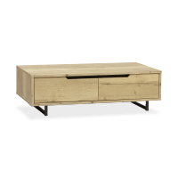 Salontafel DIADEMA met 2 deuren combineert een warme eikenhoutlook met een modern en functioneel design. De subtiele ingewerkte grepen en slanke zwarte metalen poten geven het meubel een stijlvolle en luchtige uitstraling. Dankzij de twee praktische opbergvakken blijft je woonkamer opgeruimd en kun je gemakkelijk spullen uit het zicht opbergen. Het tijdloze ontwerp past perfect in diverse interieurstijlen, van industrieel tot Scandinavisch. Een elegante en praktische aanvulling voor je zithoek!