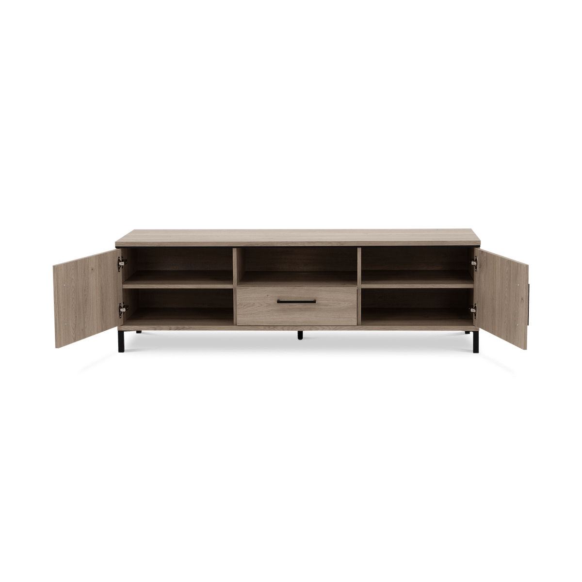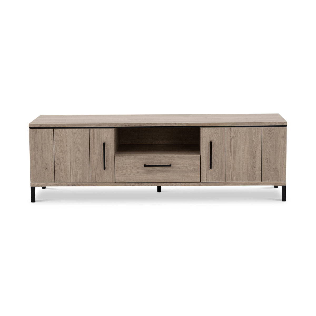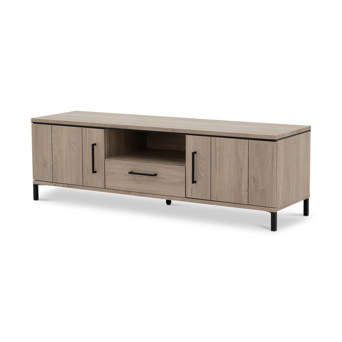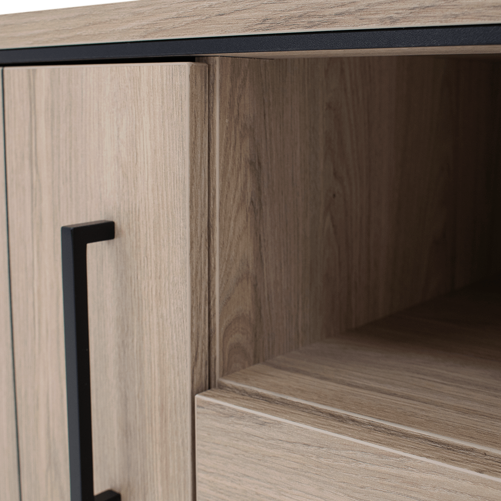 Dankzij de combinatie van gesloten kasten en een open vak met lade beschik je over voldoende ruimte om apparatuur, accessoires en kabels netjes te organiseren. Zo blijft je tv-hoek overzichtelijk en stijlvol.