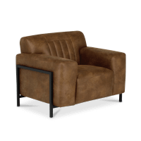 Ontmoet fauteuil SOMMER, een tijdloze toevoeging aan jouw interieur! Met zijn industriële uitstraling, stevige zwarte metalen poten en een robuuste bruine microvezel stof, is deze fauteuil een stoere blikvanger.