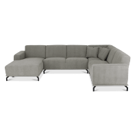 Hoeksalon SALTILLO heeft alles wat een grote familie nodig heeft. Of wat iemand die veel plaats wilt nodig heeft! Deze prachtige U-vormige hoeksalon in grijze stof is een tijdloze topper in ons assortiment en heeft al vele klanten heel gelukkig gemaakt. Met zijn fijne pootjes en mooie sierkussens, is deze Saltillo een absolute winner.