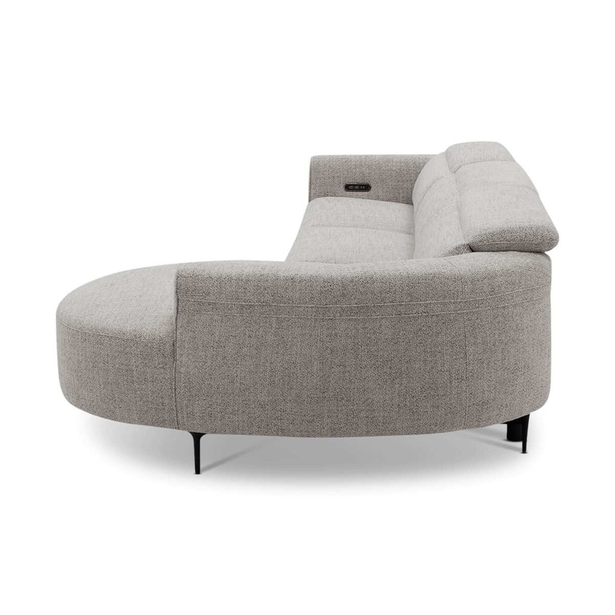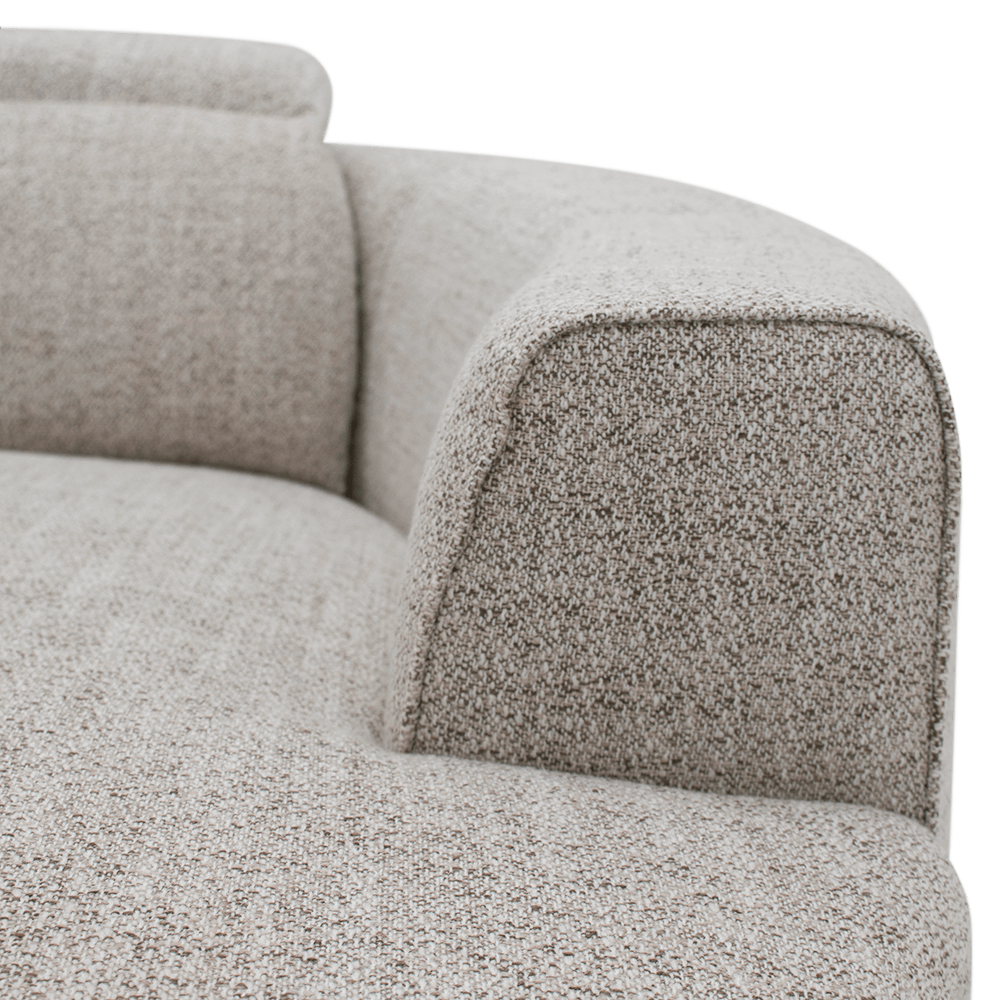 De afgeronde vormen en brede zitting zorgen voor een luxueuze, uitnodigende look, terwijl de subtiele zwarte poten een elegant contrast toevoegen.