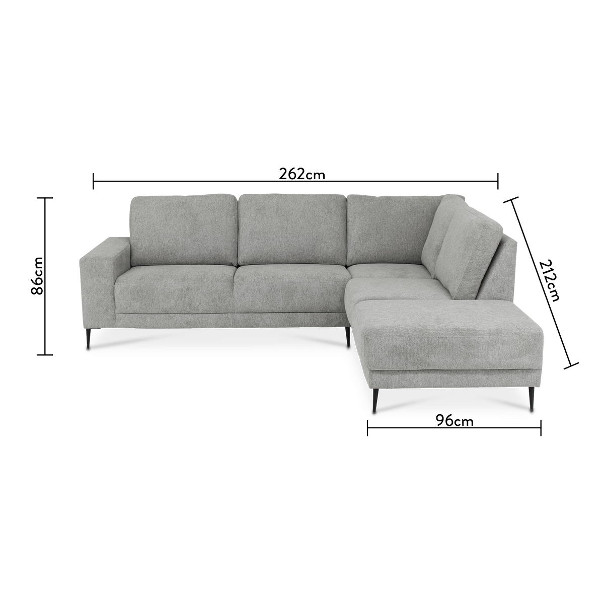 Ontdek de tijdloze elegantie van het hoeksalon SEVILLA. Met zijn compacte afmetingen van 262 cm breed, 93 cm diep en 212 cm lang past dit salon perfect in elke woonruimte.