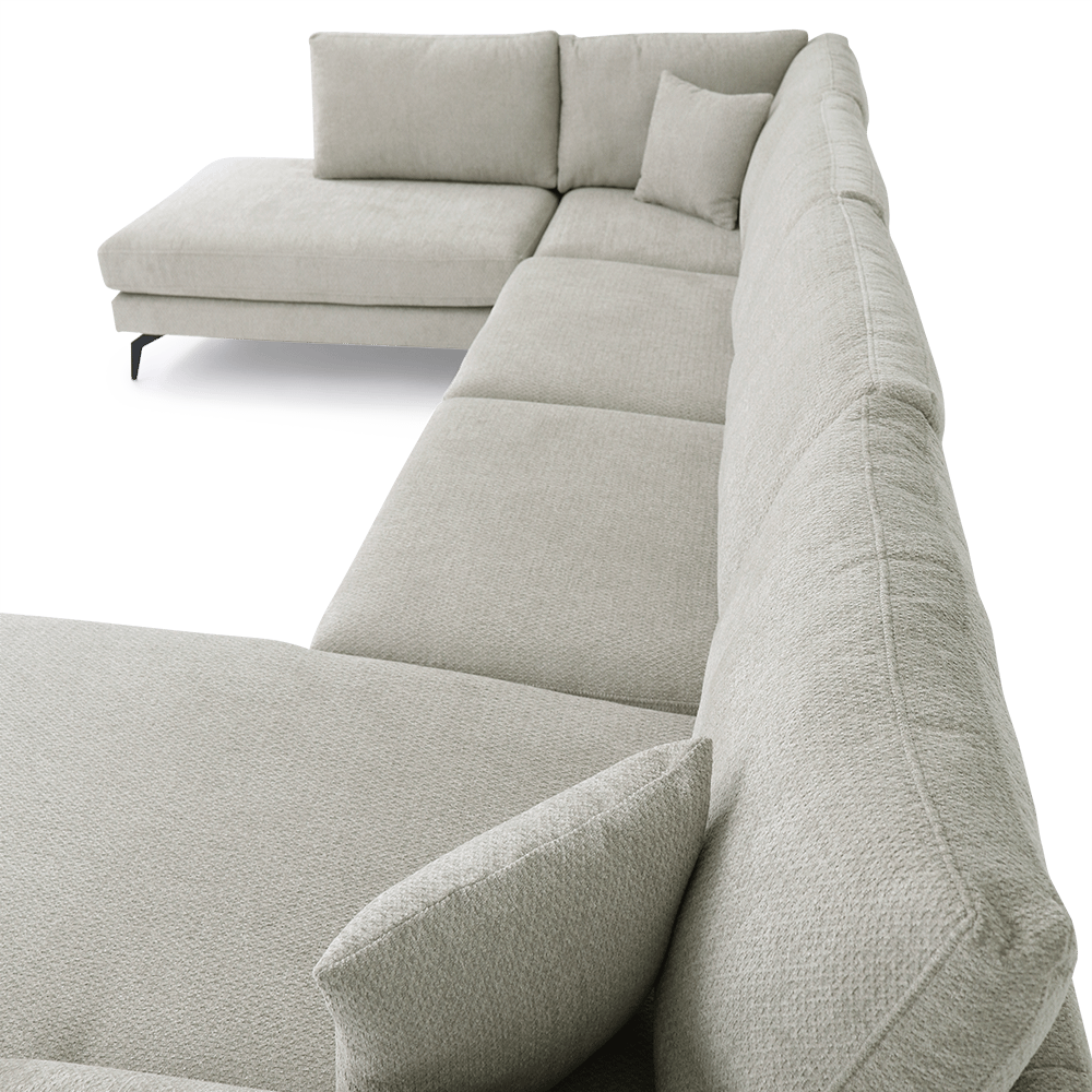 Met de longchair aan de linkerkant creëert de CELINE een uitnodigende en comfortabele zithoek waar je heerlijk kunt loungen. De grijze kleur, liefkozend Retro Bliss genoemd, geeft een vleugje verfijning aan elke ruimte en past perfect bij diverse interieurstijlen.