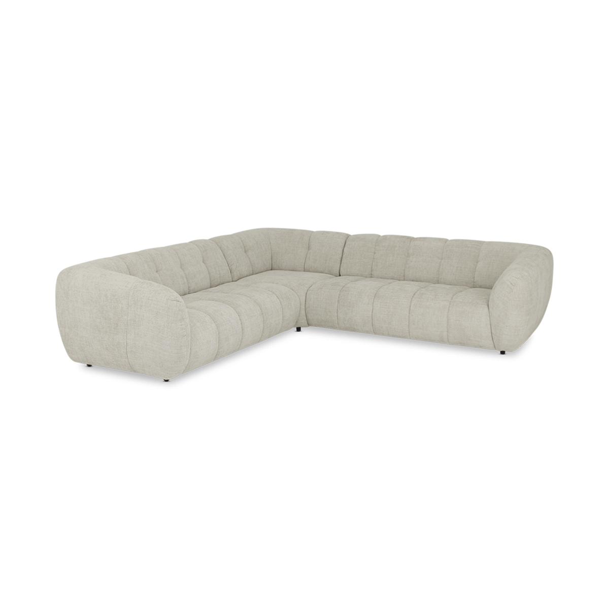 Hoeksalon DILARA combineert comfort en design in perfecte harmonie. Met zijn royale afmetingen van 291 x 291 cm biedt deze sofa ruimte voor ontspannen samenzijn én stijlvolle uitstraling. De zachte bekleding in beige stof, kleur Renegade 1, straalt warmte en elegantie uit, terwijl de afgeronde vormen en subtiele stiksels zorgen voor een eigentijdse, luxueuze look. Dankzij de lage zit en diepe kussens nodigt DILARA uit tot pure ontspanning — ideaal voor moderne interieurs waarin comfort en esthetiek samenkomen.