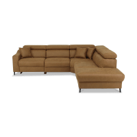 De hoeksalon KAZAN, uitgevoerd in een prachtige cognac kleur, straalt warmte en elegantie. De zwarte poten geven Kazan een modern en strak uiterlijk, en contrasteren met de rijke cognac kleur van de bekleding.Â