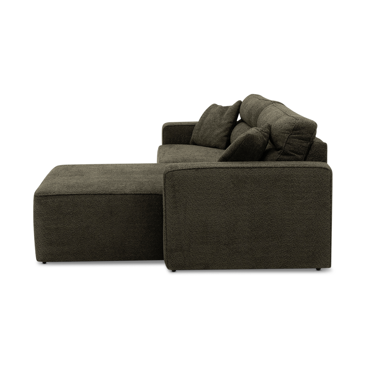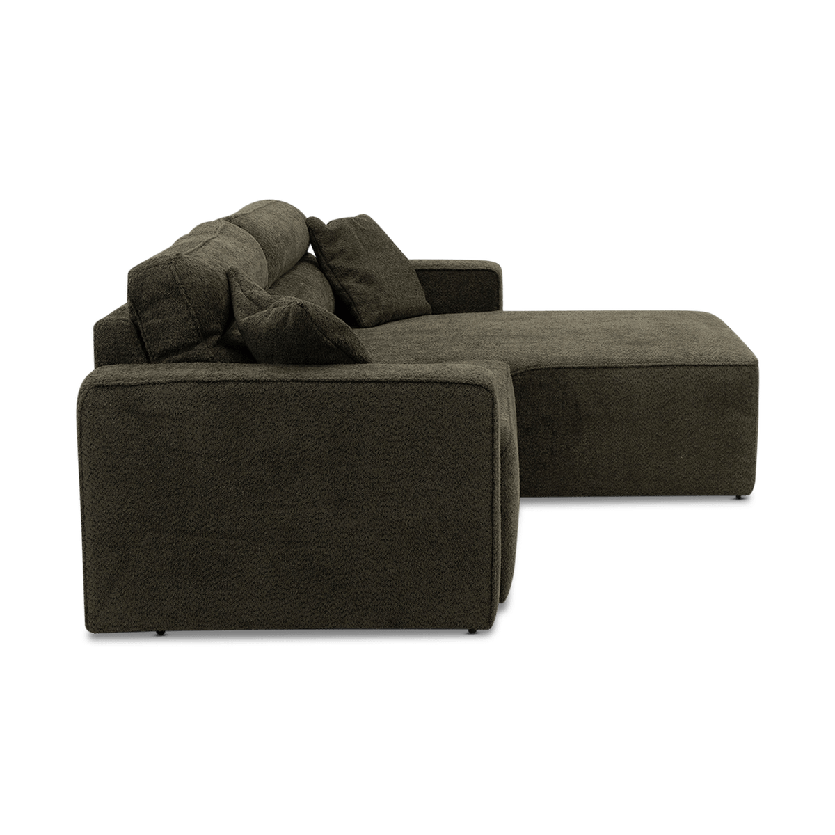 Dankzij de warme, donkergetinte stof in Groen straalt FIGARO gezelligheid en klasse uit. Ideaal voor wie zoekt naar een moderne compacte hoekzetel met comfortabele stof – FIGARO maakt van elke woonkamer een plek om écht tot rust te komen.