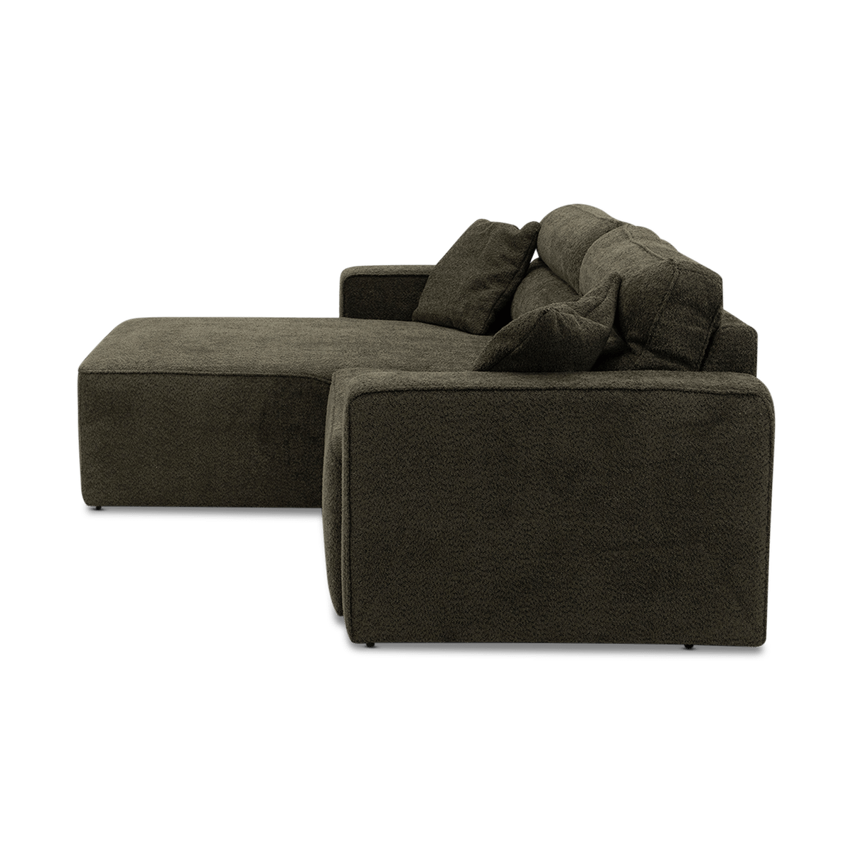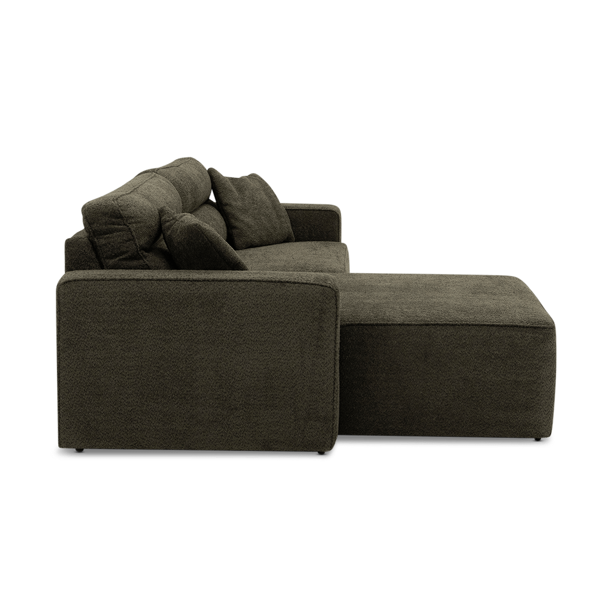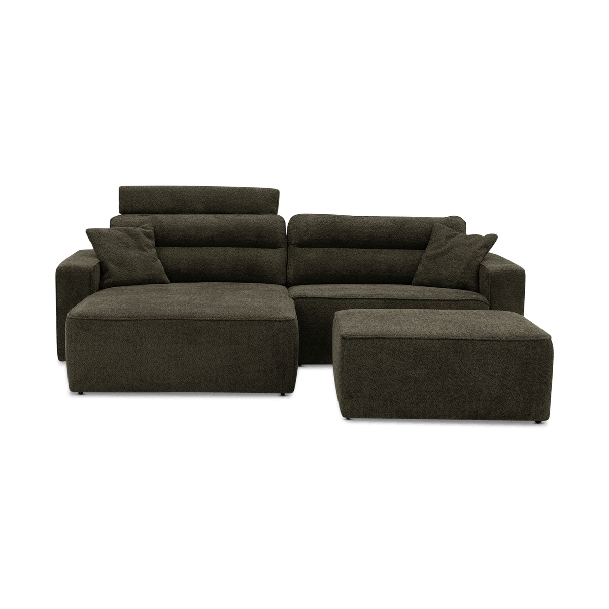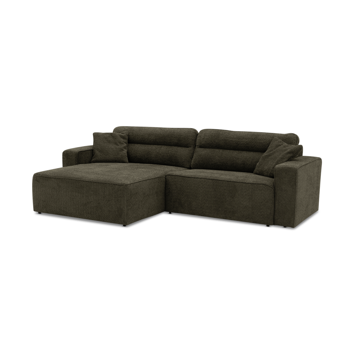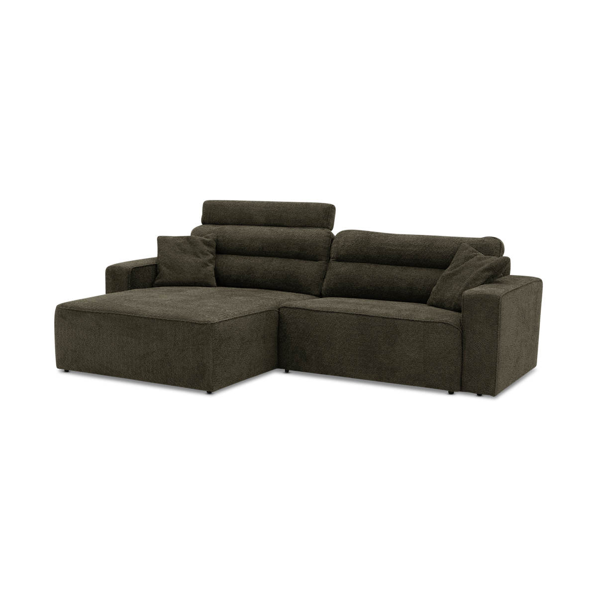 Dankzij de warme, donkergetinte stof in Groen straalt FIGARO gezelligheid en klasse uit. Ideaal voor wie zoekt naar een moderne compacte hoekzetel met comfortabele stof – FIGARO maakt van elke woonkamer een plek om écht tot rust te komen.