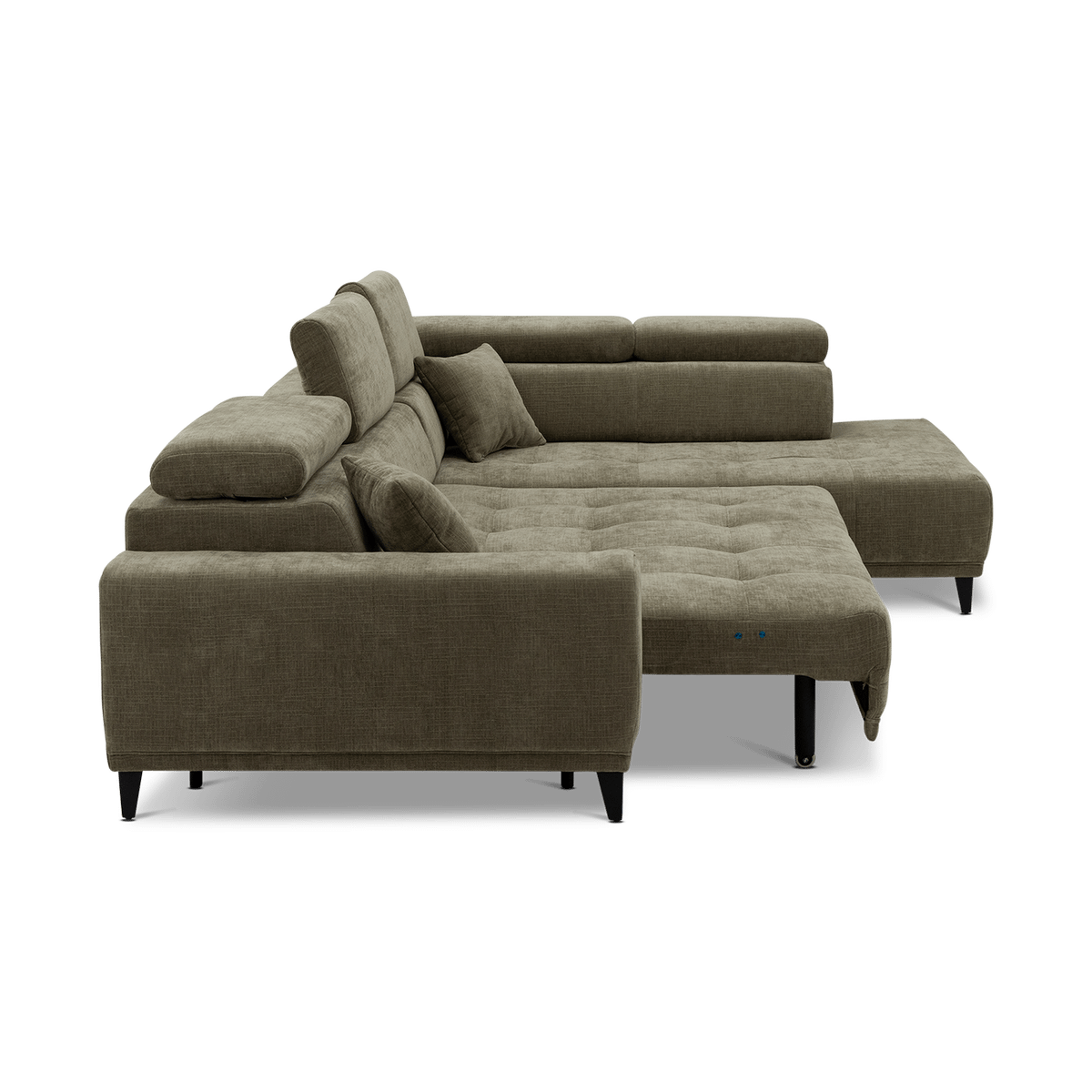 Hoeksalon MISTRAL in Groene stof combineert stijl met geavanceerd zitcomfort.