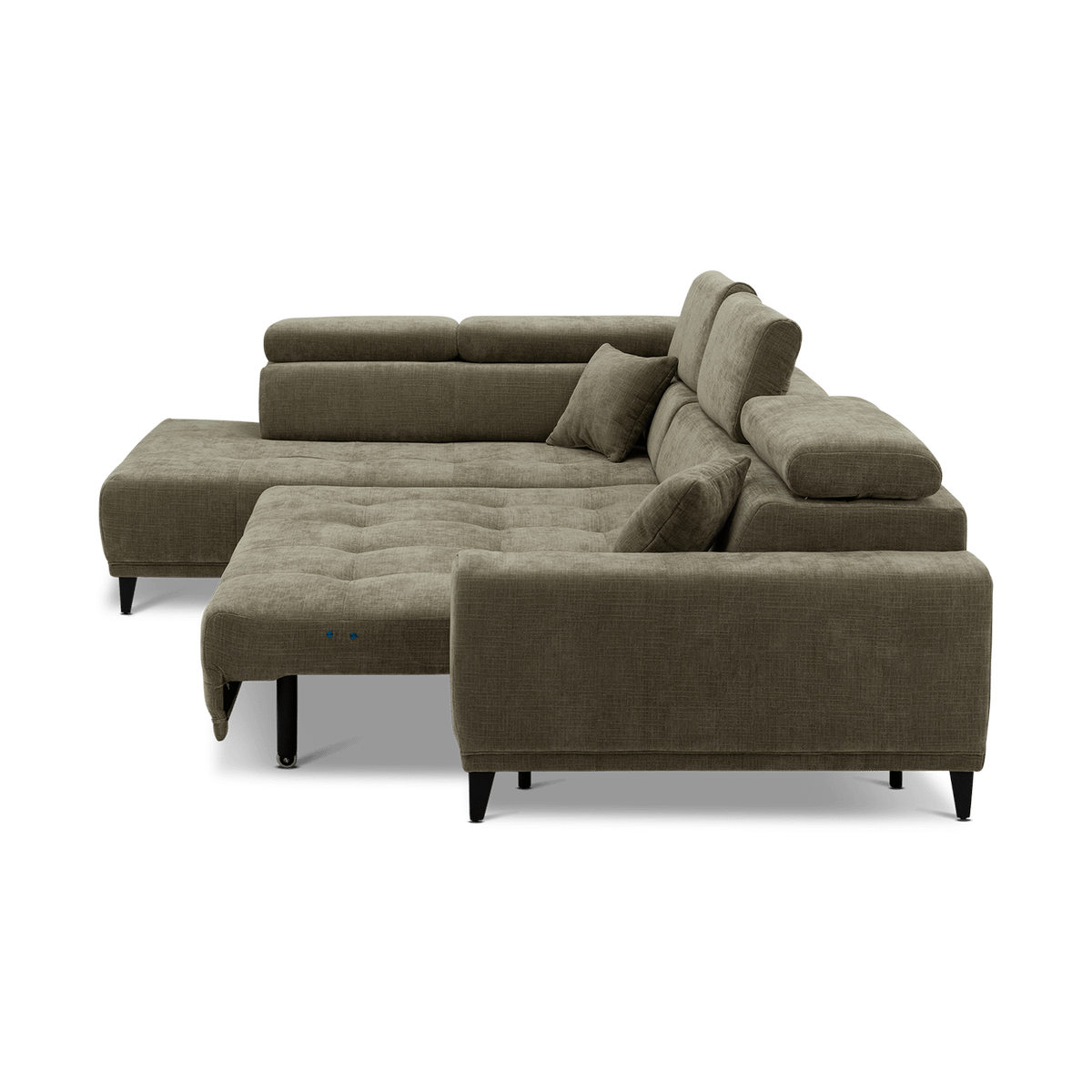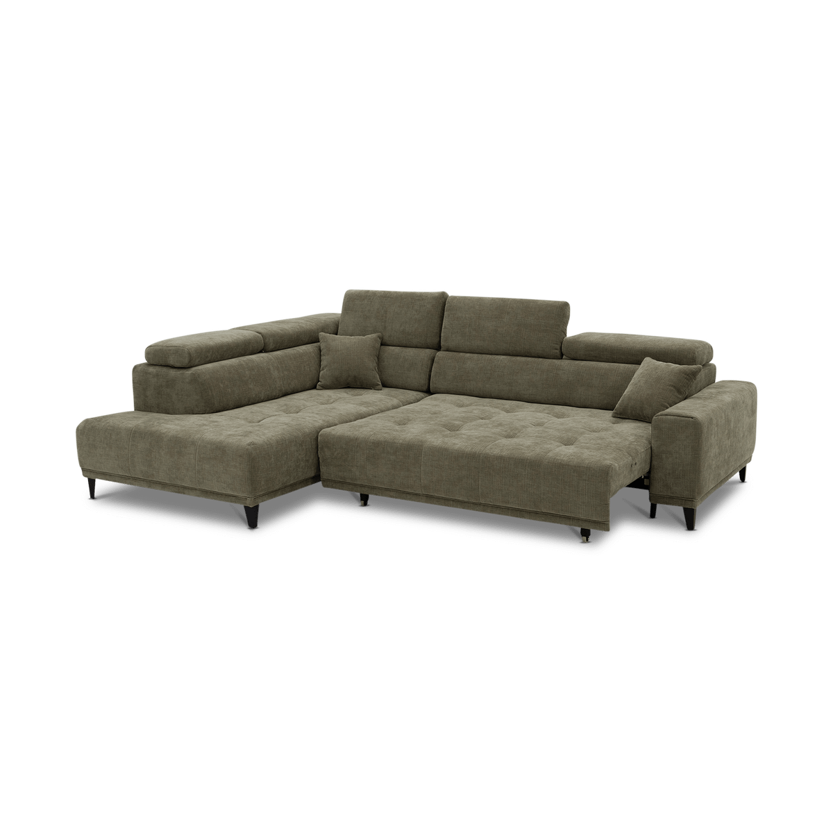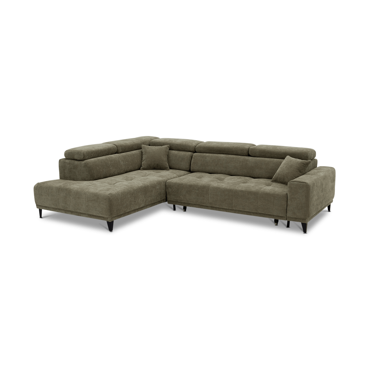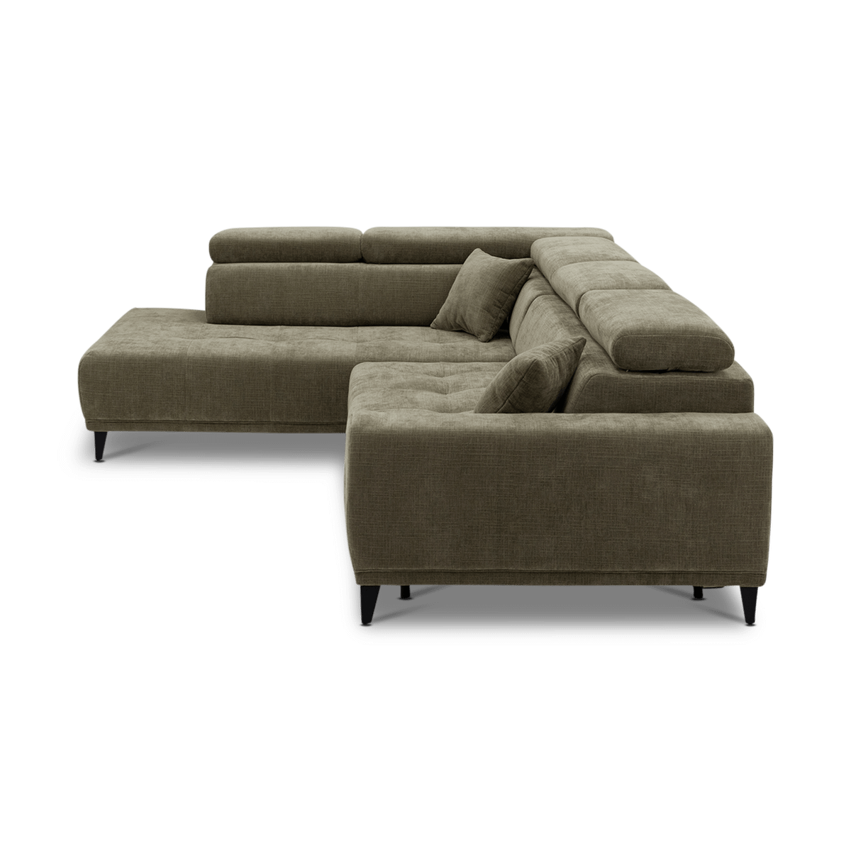 Hoeksalon MISTRAL in Groene stof combineert stijl met geavanceerd zitcomfort.