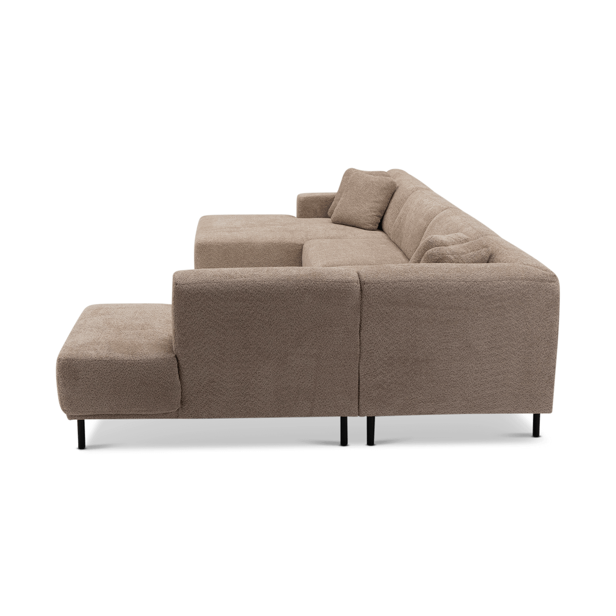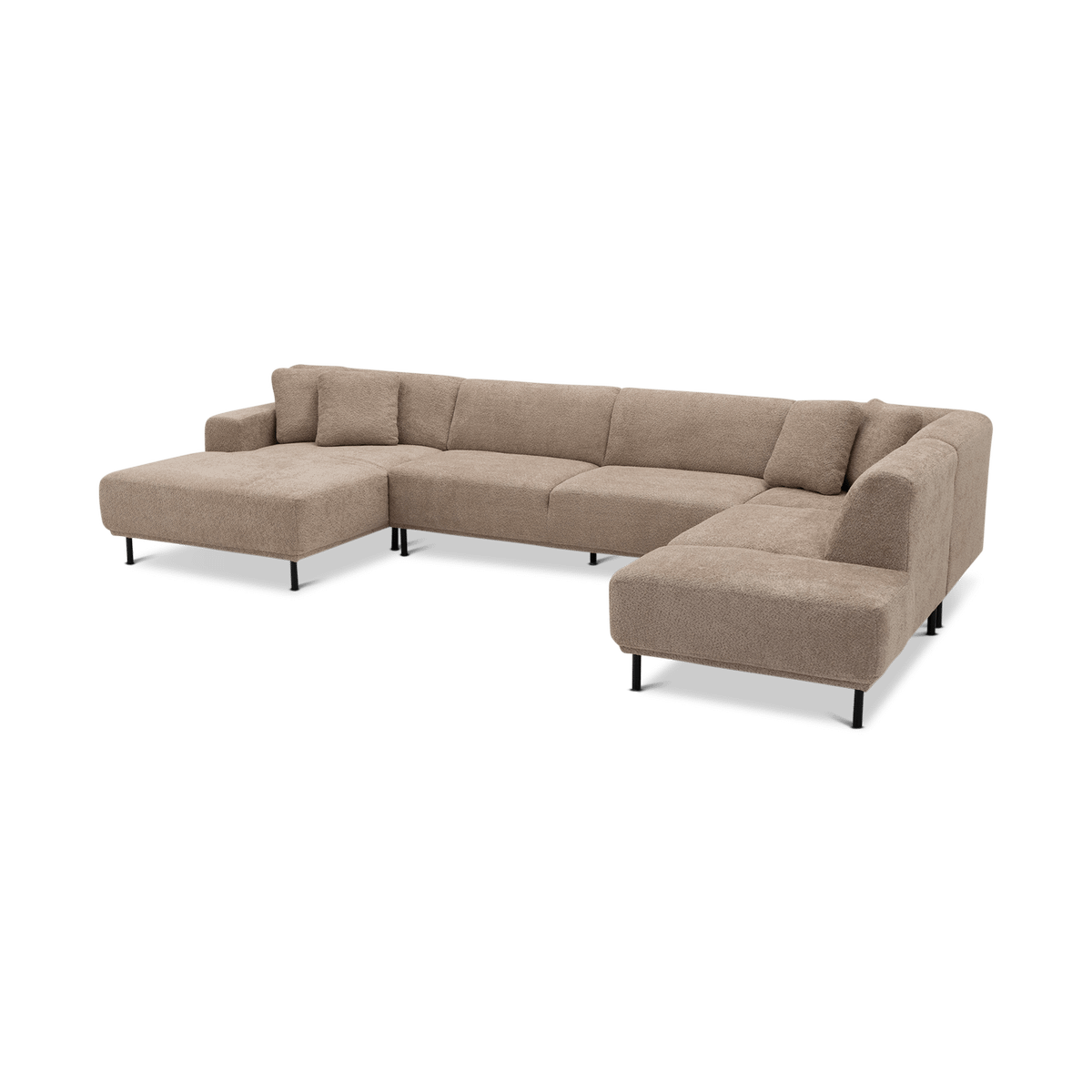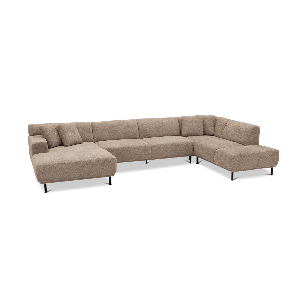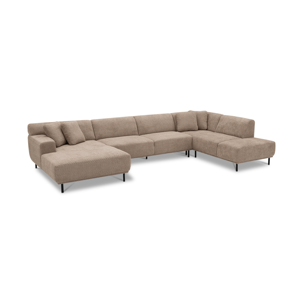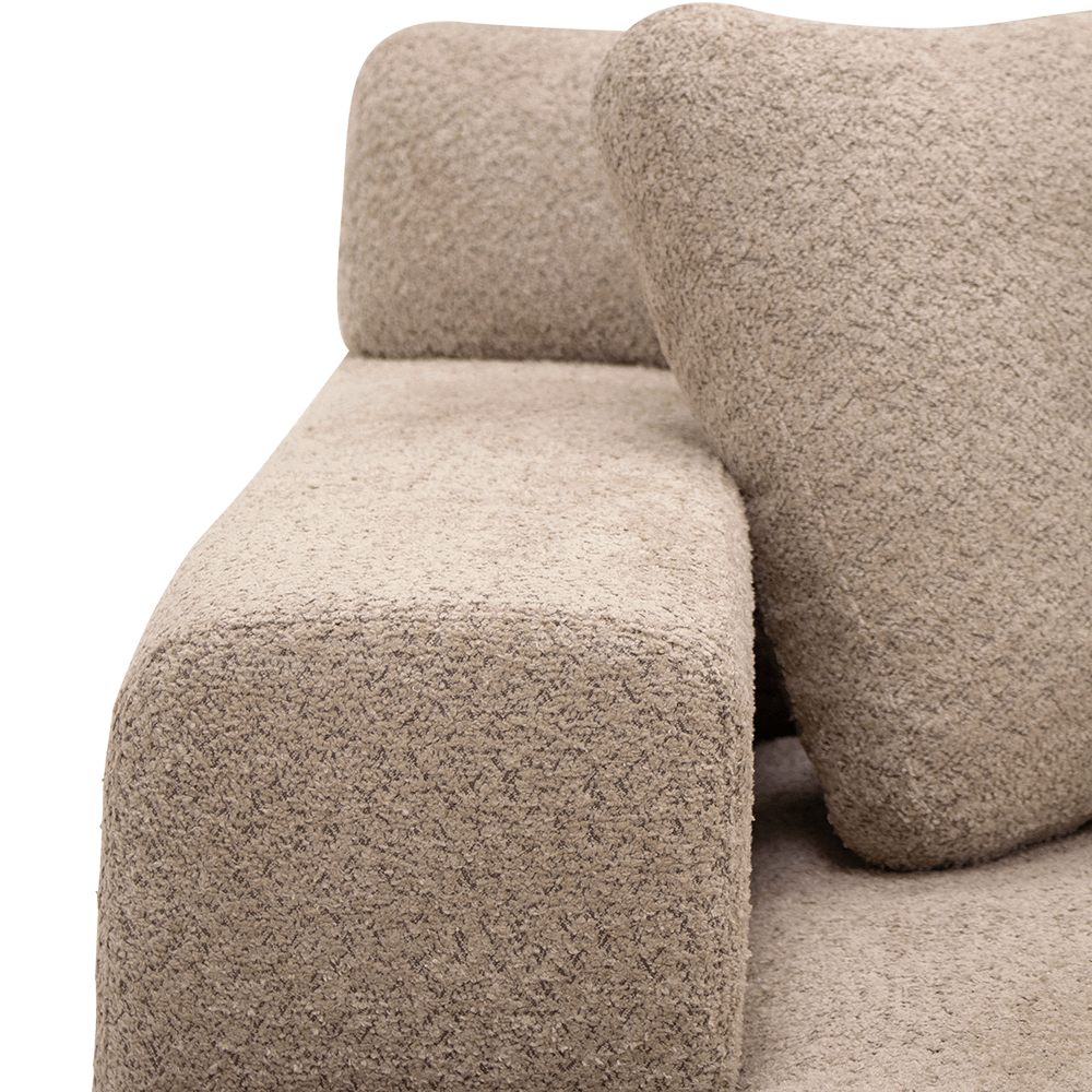 Uitgevoerd in een subtiel roze stof, straalt deze zetel warmte en verfijning uit. Met een royale breedte van 390 cm biedt hij ruim plaats voor het hele gezin. De lage rugleuningen, zachte kussens en strakke lijnen zorgen voor een eigentijdse uitstraling die perfect past in moderne interieurs.