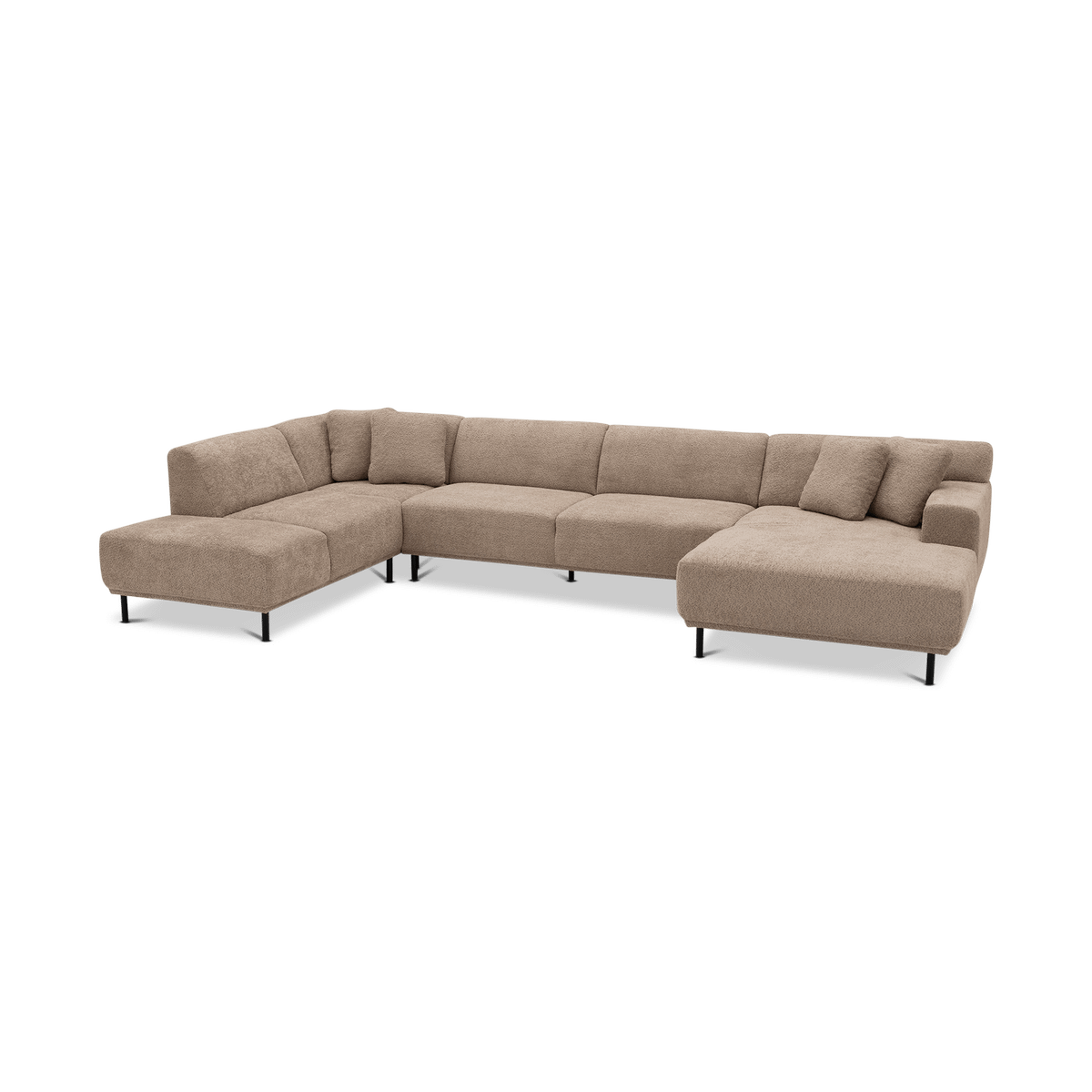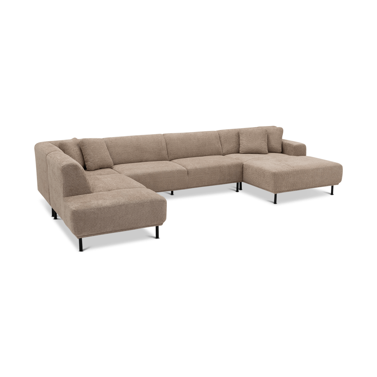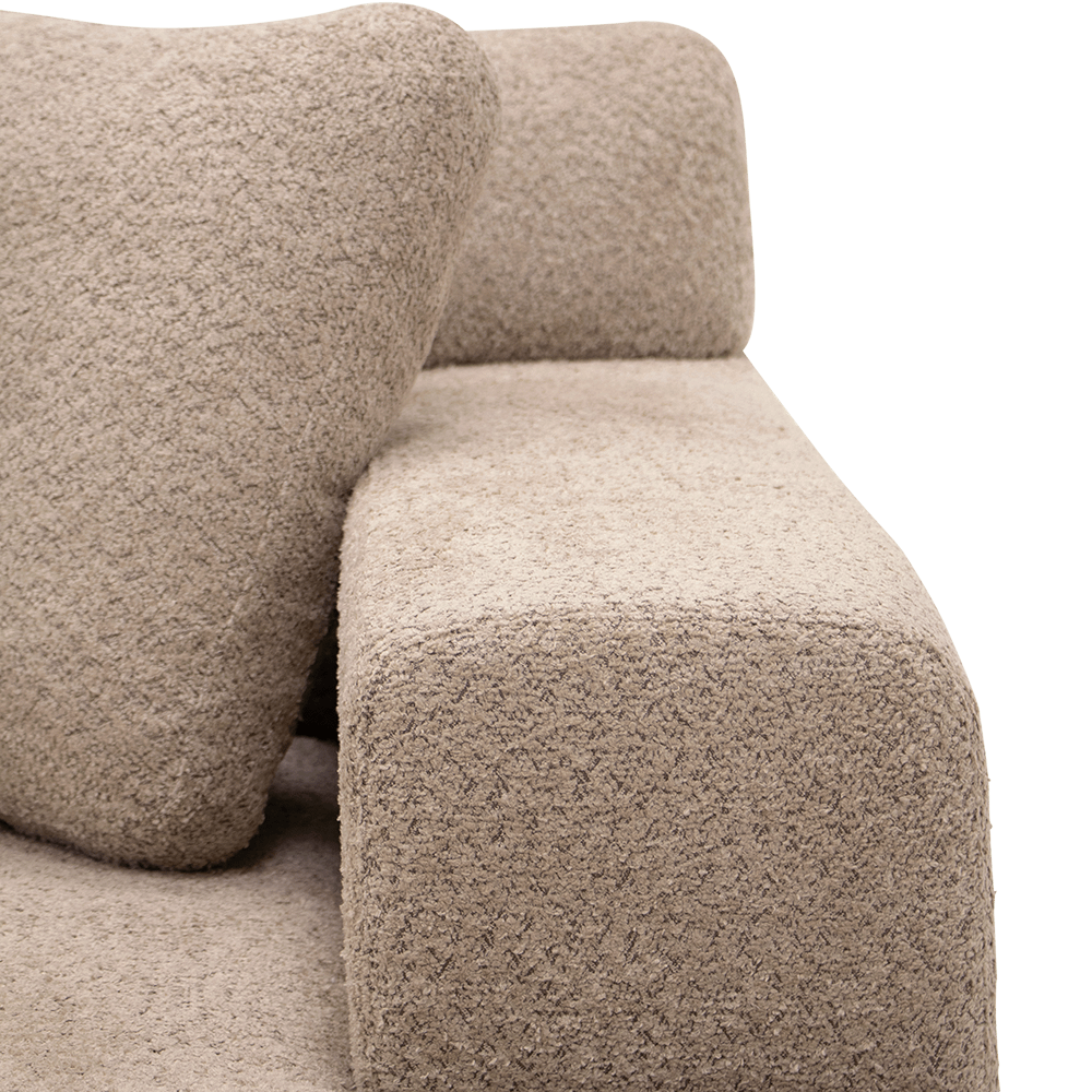 Uitgevoerd in een subtiel roze stof, straalt deze zetel warmte en verfijning uit. Met een royale breedte van 390 cm biedt hij ruim plaats voor het hele gezin. De lage rugleuningen, zachte kussens en strakke lijnen zorgen voor een eigentijdse uitstraling die perfect past in moderne interieurs.