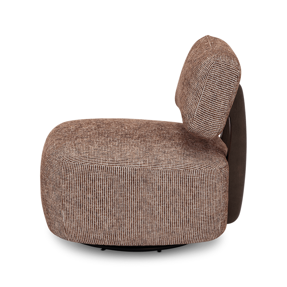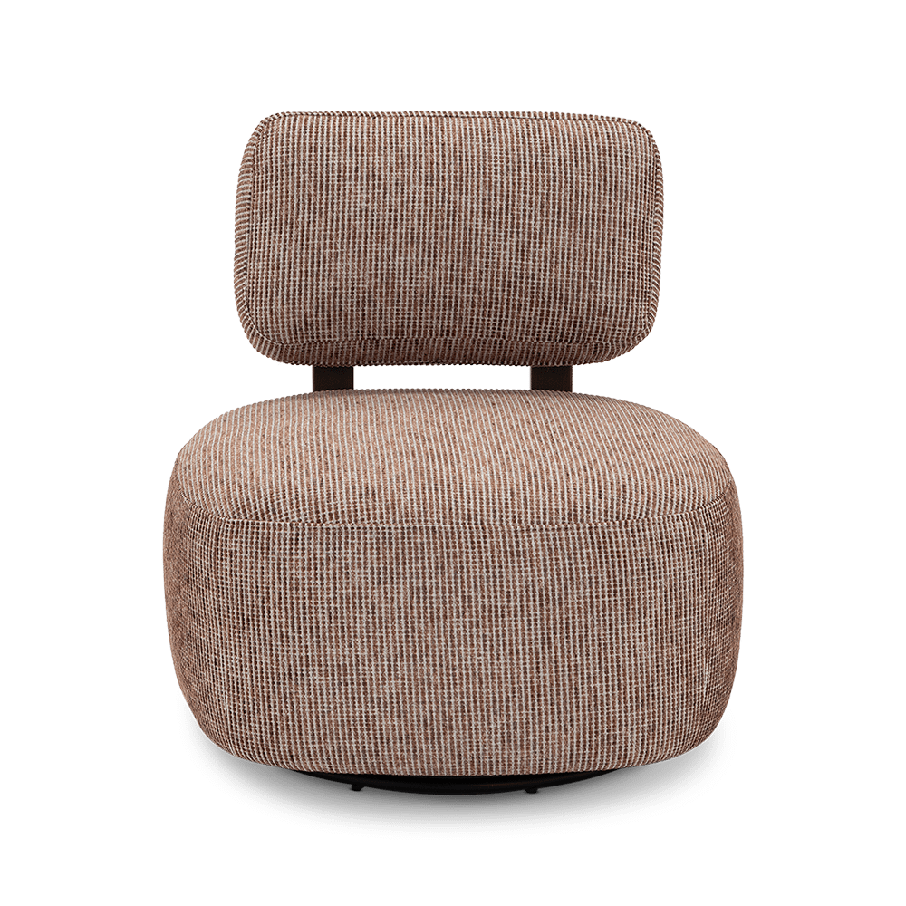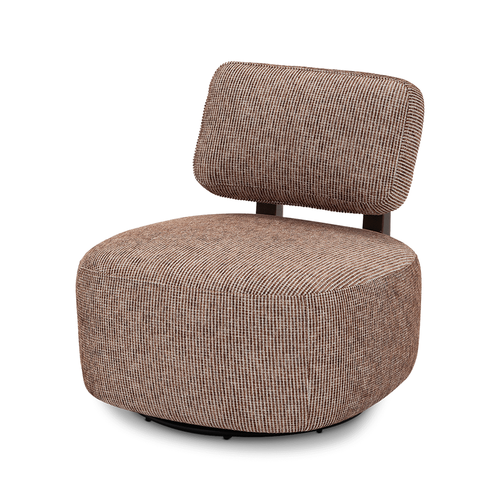 Dankzij de draaivoet beweeg je vlot mee — ideaal in een zithoek of als losse accentstoel. Comfort en karakter in één compact design.