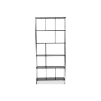 Boekenrek CLAVIS is voor trendsetters onder ons. Perfect om je mooie herinneringen, decoratiestuks, plantjes en boeken op te zetten, dit boekenrek wordt een absolute eyecatcher in je woonkamer. Met zijn mooie mat zwarte metalen frame en assymetrische leggers, is het boekenrek al interessant op zich om naar te kijken. Dit boekenrek heeft een breedte van 90cm en een hoogte van 200cm.